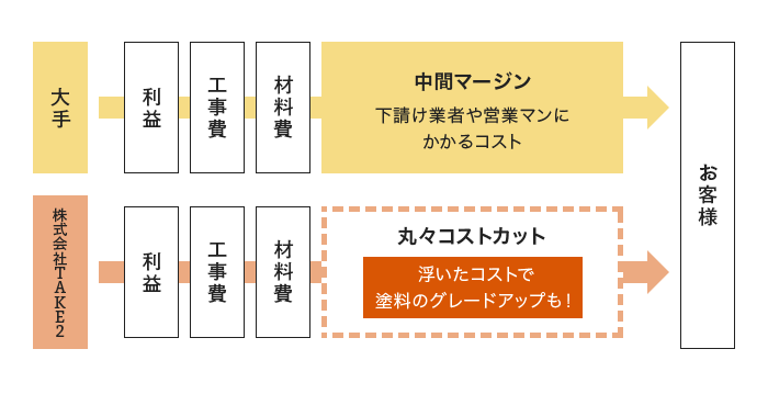 私たちは職人直営の塗装店。お客様からご注文をいただくのも、現場で施工を行うのも同じ職人です。